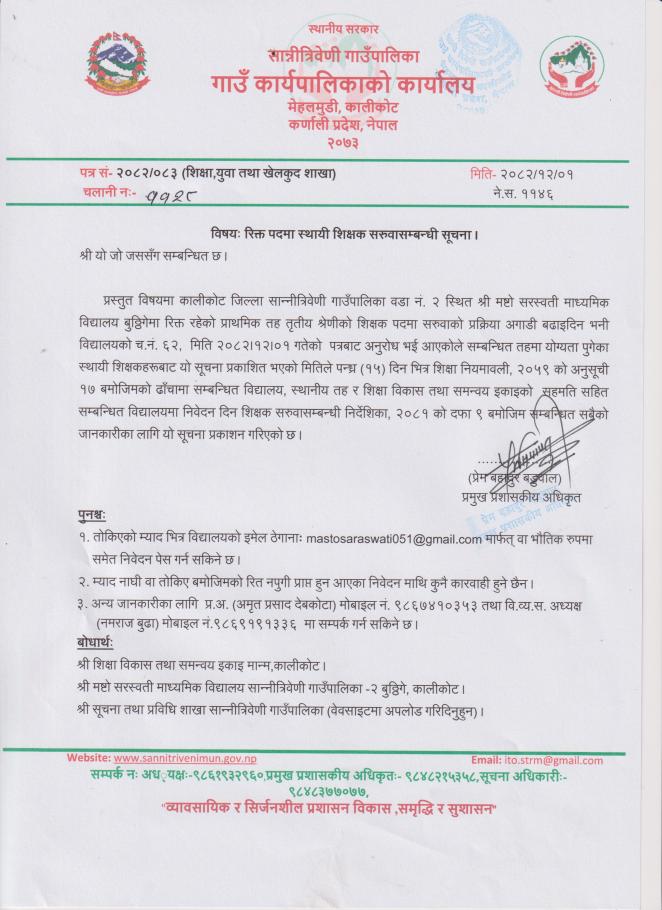 » रिक्त पदमा स्थायी शिक्षक सरुवा सम्बन्धी सूचना