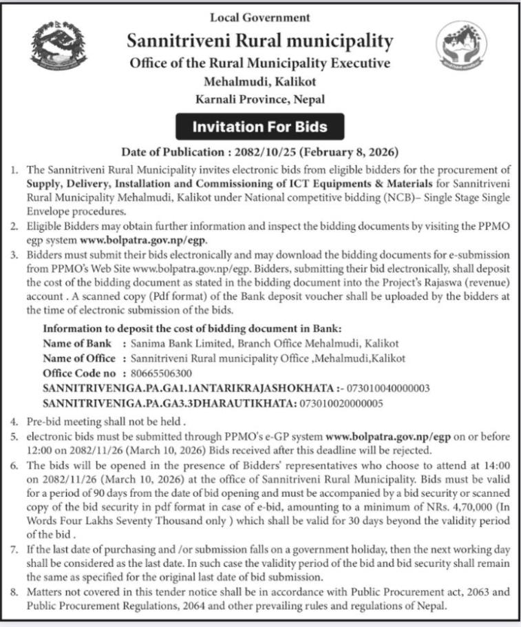 procurement of Supply, Delivery, Installation and Commissioning of ICT Equipments & Materials for Sannitriveni Rural Municipality